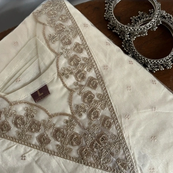 Beige Chanderi Silk Cotton Kurti With Dupatta And Pant