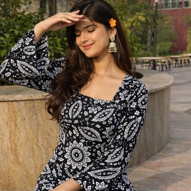 Pure Cotton Printed Flared Sleeves Kurti For Women