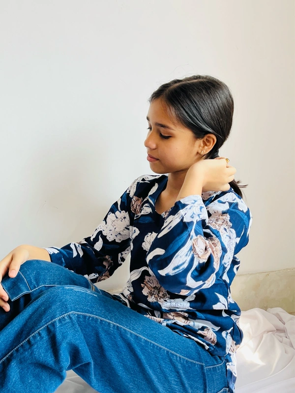 Blue Printed Soft Premium Rayon Short Kurti For Womens