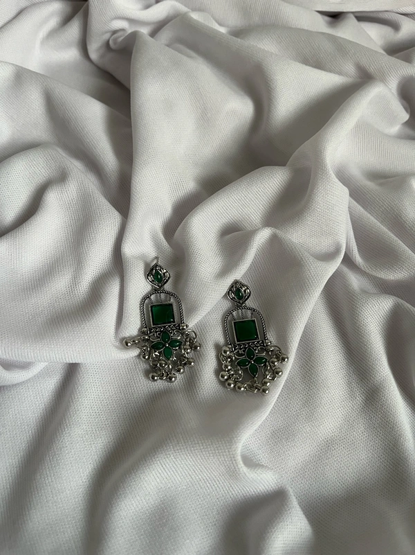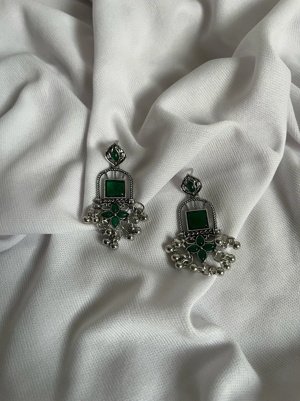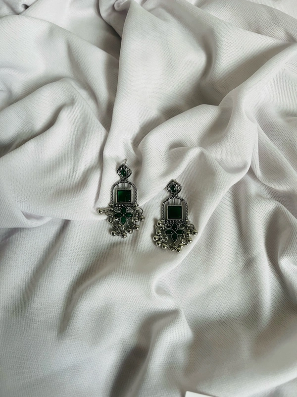 Crystal Green Oxidised Jhumka