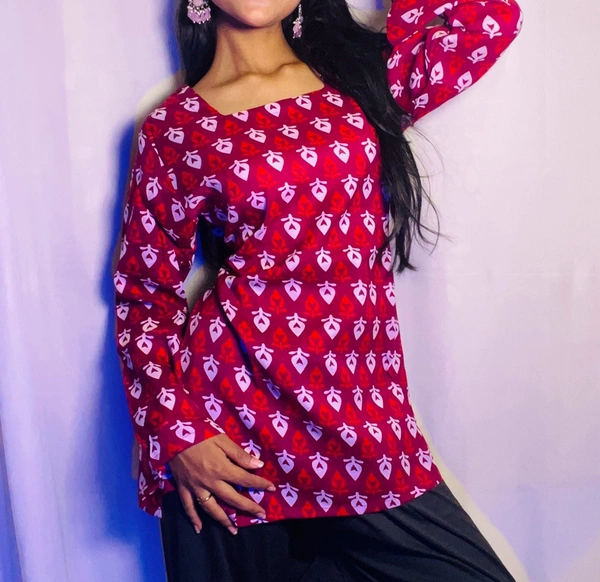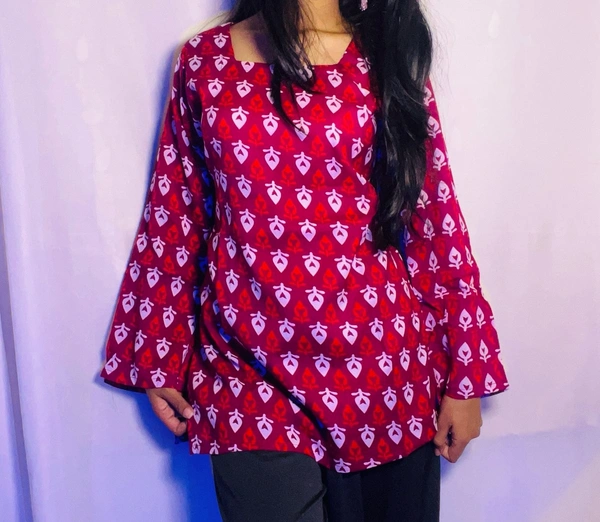 Flared Sleeves Printed Cotton Kurti For Women