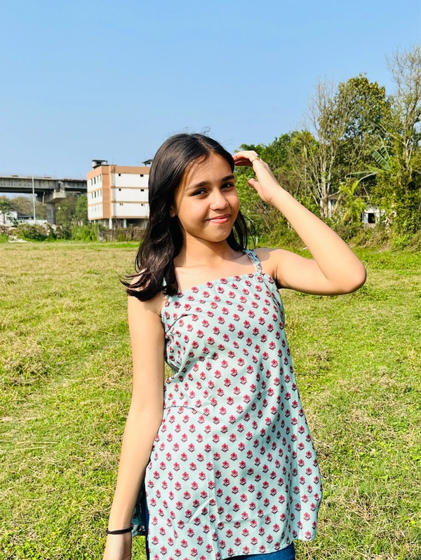 Premium Rayon Printed Sleeveless Short Kurti For Women