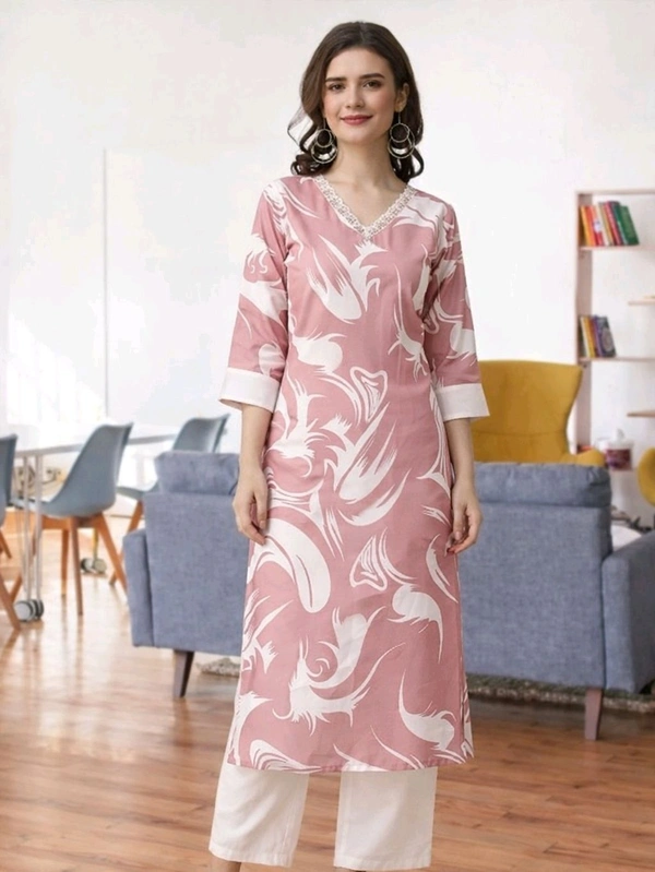 Pure Cotton Pink Kurti Set ( Kurti + Pant)