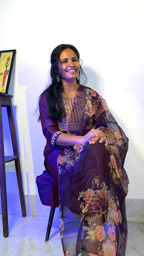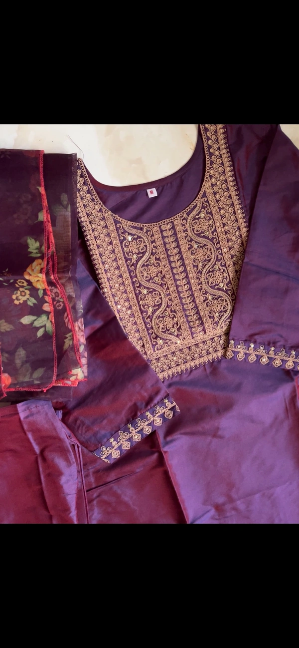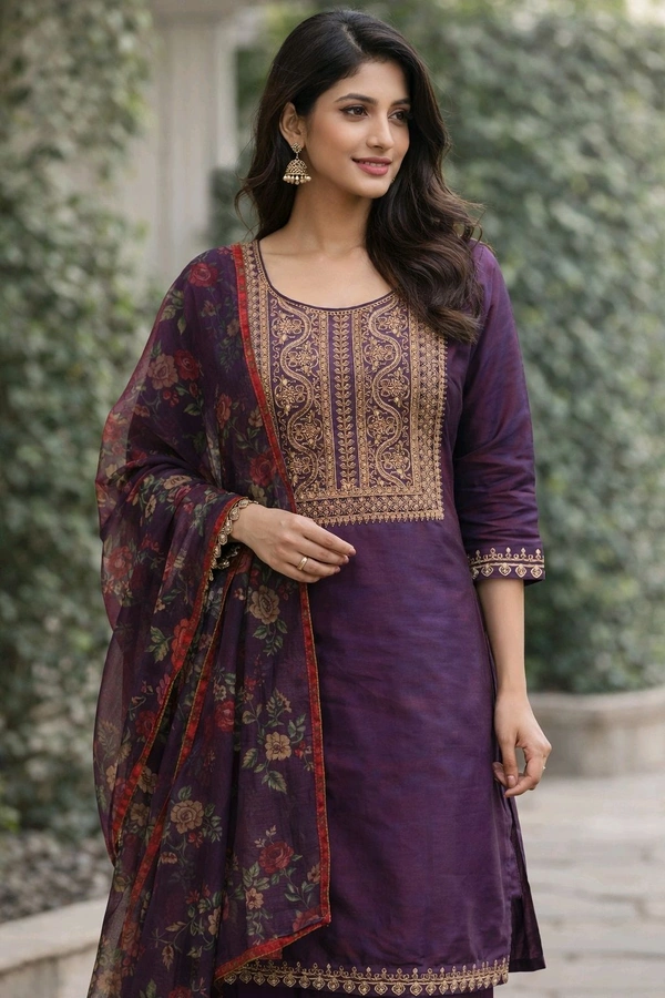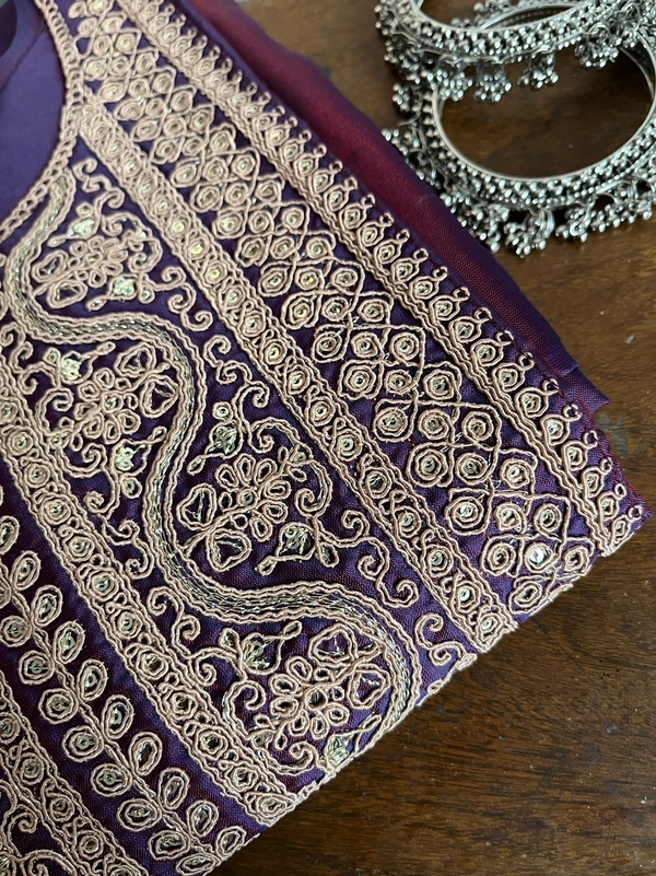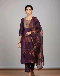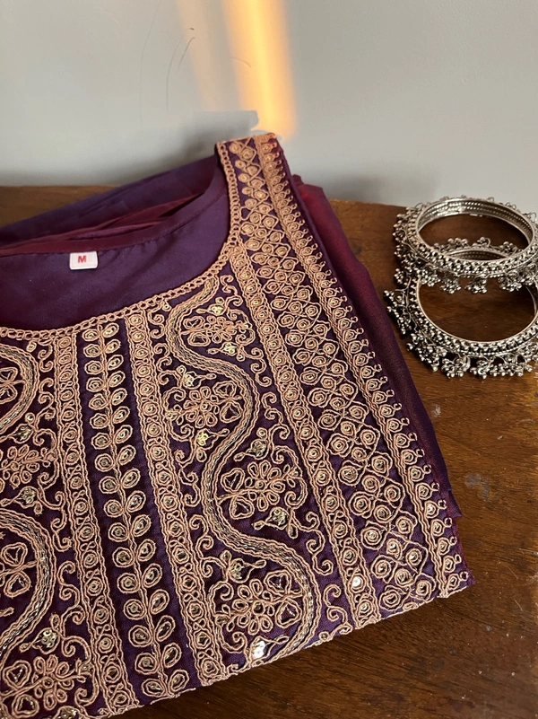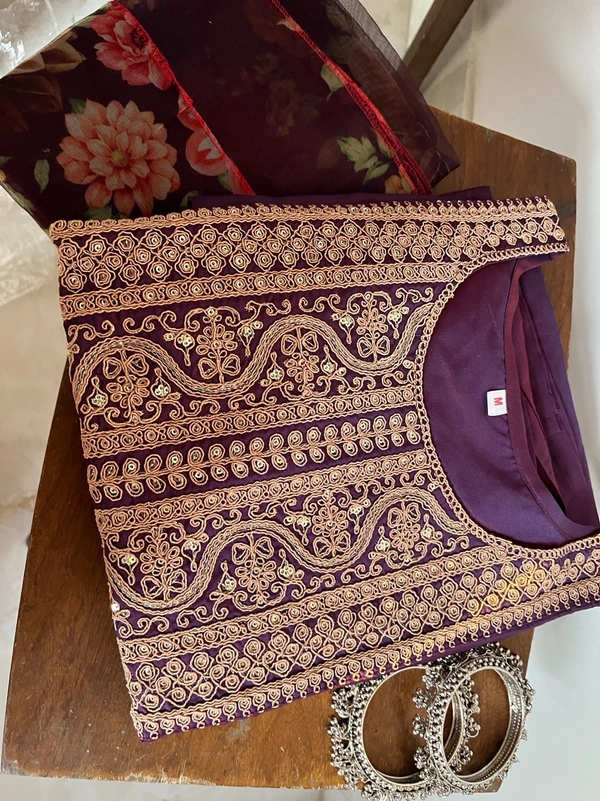 Purple Embroidered Kurti Set With Kurti , Dupatta And Pant Set