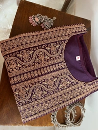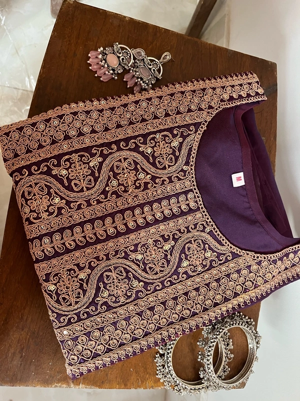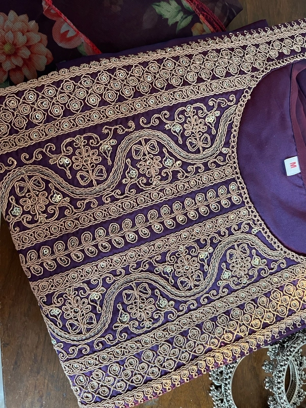 Purple Embroidered Kurti Set With Kurti , Dupatta And Pant Set