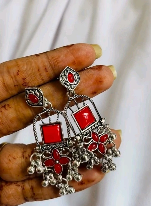 Red Oxidised Jhumka