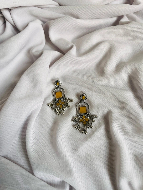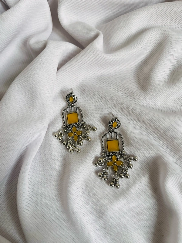 Yellow Oxidised Silver Jhumka
